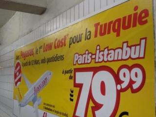 Pegasus Havayollarını‘nı özellikle sahibi ve yönetim kurulu başkabı Ali Sabancı‘dan dolayı ilgiyle takip ediyorum. İstanbul’dan Paris’e her şey dahil 50 €’dan başlayan fiyatlarla tarifeli seferler düzenlemeye başladılar. TV ve gazetelerde reklamlarını görüyordum. Ancak Taksim-4 Levent hattındaki metro istasyonlarına reklam vermiyorlardı.